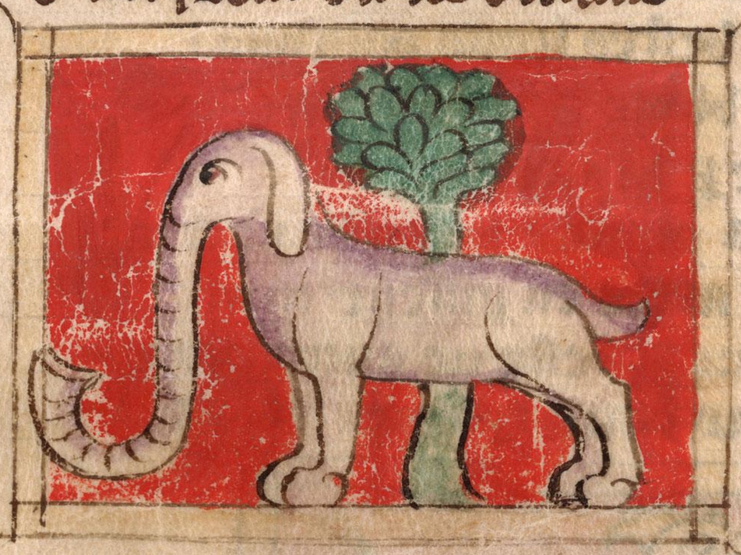 An olyfaunt lyneth ccc yere. He doubteth & fereth the wesell and the culeuure & dredeth vermyne. Yf the culeuure clyue & be on tholyfaunt, it departeth not tyl it hath slayn hym. She fawneth her fawnes & hydeth them where is no woode and fawneth in the water; ffor yf she laye on therthe, she sholde neuer aryse ne releue, ffor as moche their bones ben al hool without joyntes from the bely vnto the feet.